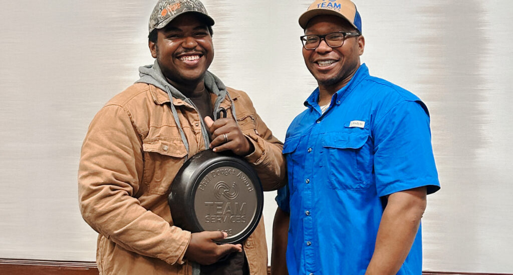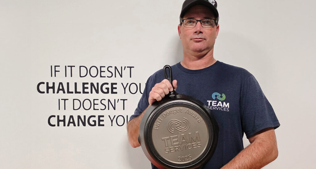 Cooking wasn’t just something he did, it was something he shared with everyone he cared about. From Louisiana to Texas, from family gatherings to boat docks, he brought joy through the meals he made and the stories he told while making them. In commemoration of this passion, the Phil Douget Customer Service Award is presented with a cast-iron skillet engraved with Team Services’ logo.